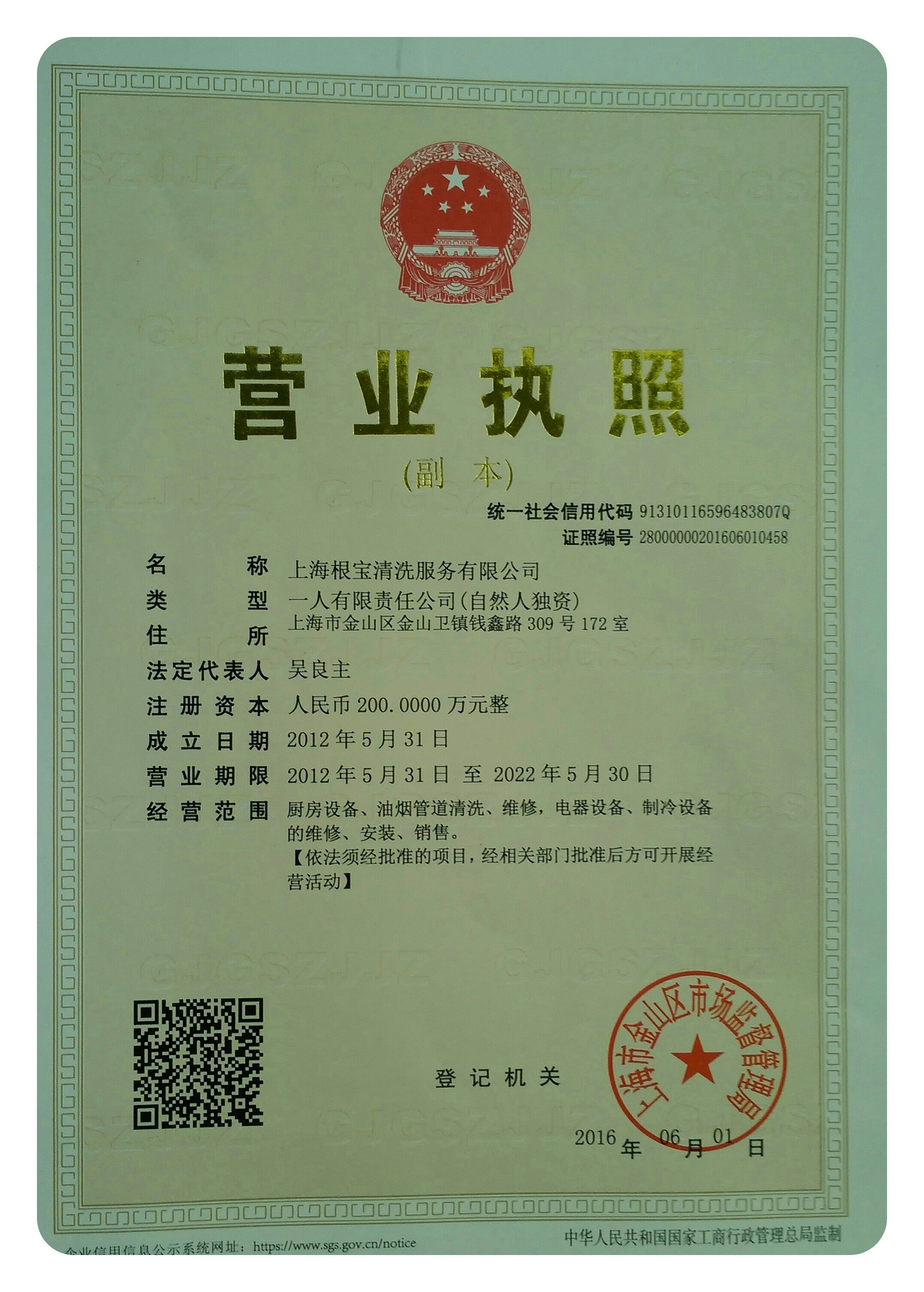 上海根宝清洗服务有限公司